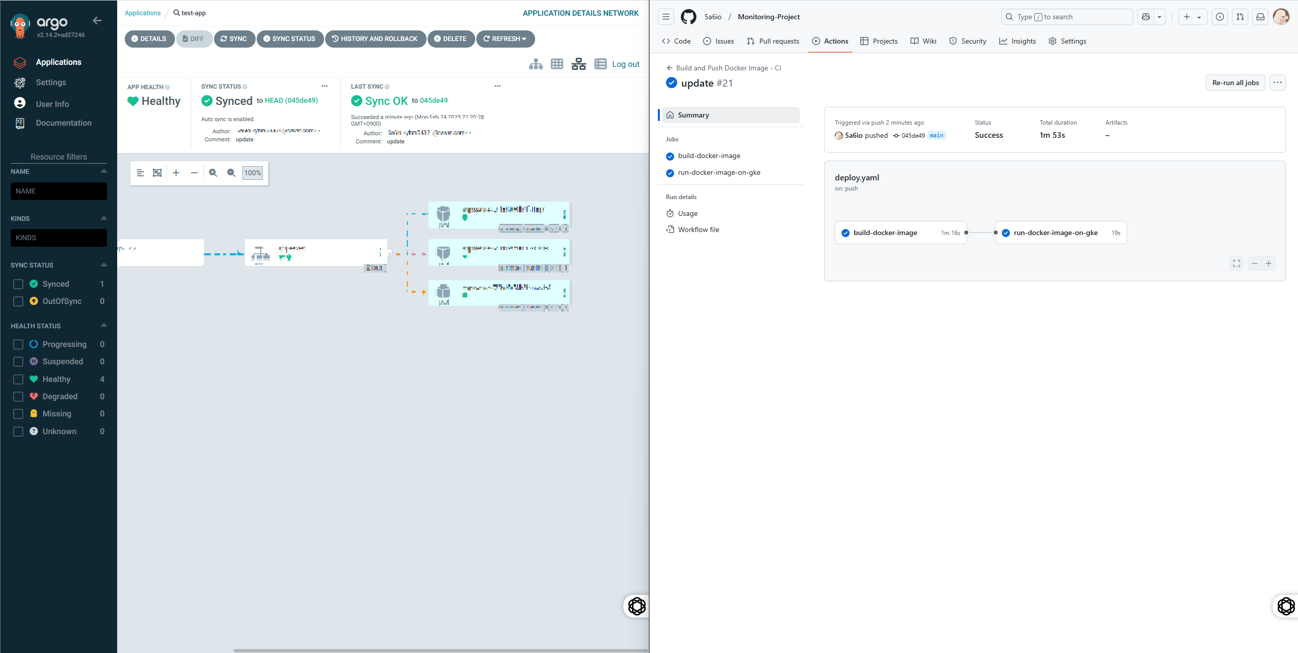 argocd๋ฅผ ์ค์นํ์ฌ github์ ์ฐ๊ฒฐํ๋ ๊ฒ์ ์ ๋ง ๊ฐ๋จํ๊ฒ ๋๋ผ ์ ์๋ค. ์๋ repository๋ argocd๋ฅผ ์ค์นํ์ฌ ์งํํ๊ณ ์๋ ์ฌ์ด๋ ํ๋ก์ ํธ์ด๋ค.