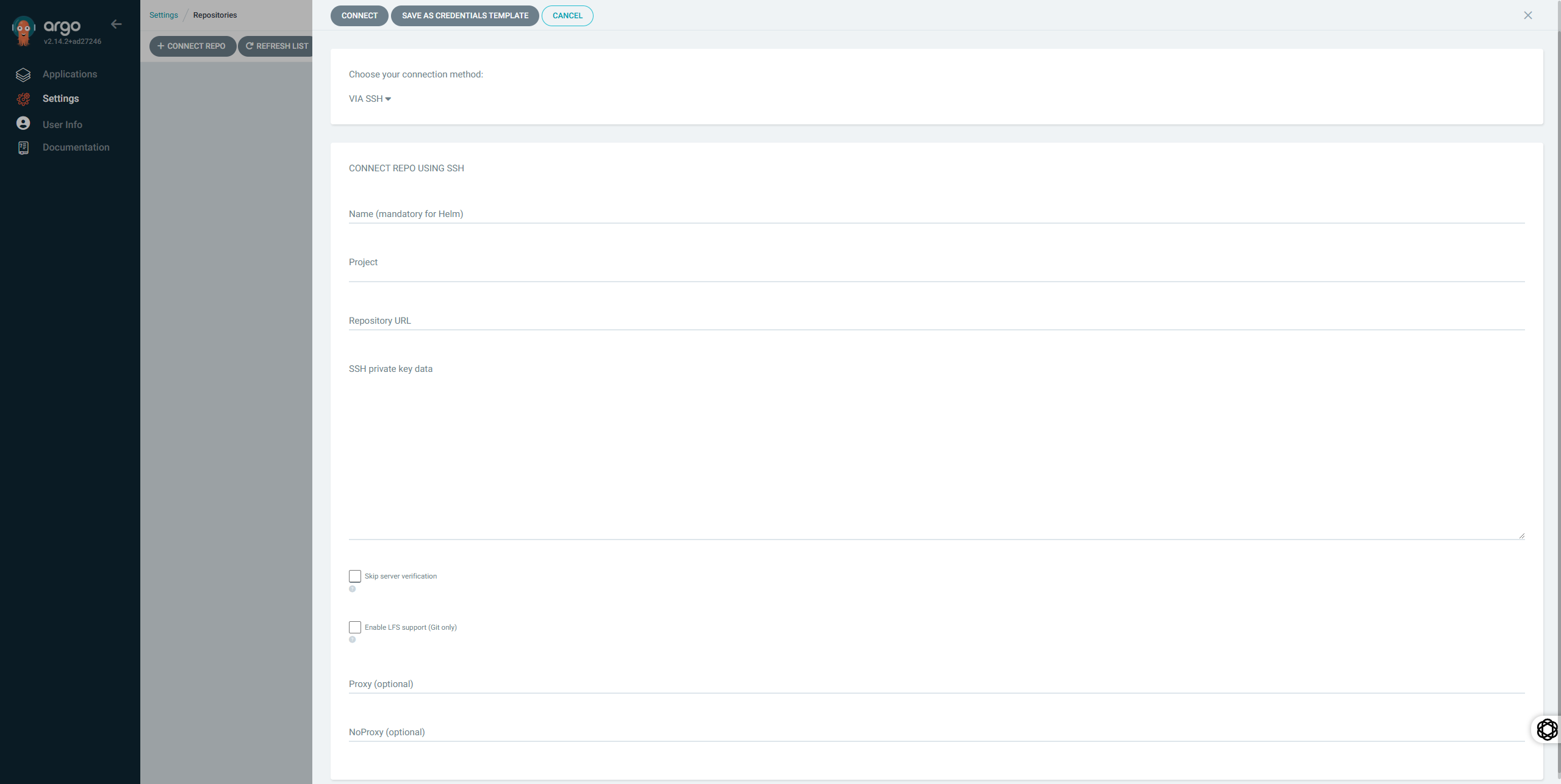 ๊ทธ๋ฆฌ๊ณ ์์ ๊ฐ์ด secret์ ๋ง๋ค๋ฉด ๋๋ค. ํด๋น secret์ ๋ํ ๋ด์ฉ์ https://argo-cd.readthedocs.io/en/stable/operator-manual/declarative-setup/ ๋ฅผ ์ฐธ๊ณ ํ๋ฉด ๋๋ค.