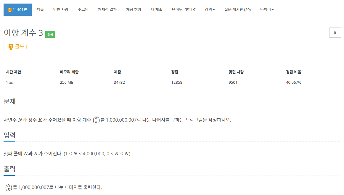 https://www.acmicpc.net/problem/11401