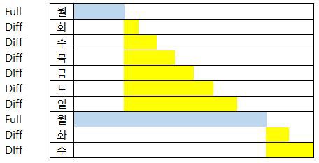 ๊ตฌ๋ถ | ์ ์ฒด ๋ฐฑ์ | ์ฆ๋ถ ๋ฐฑ์ | ์ฐจ๋ฑ ๋ฐฑ์ |