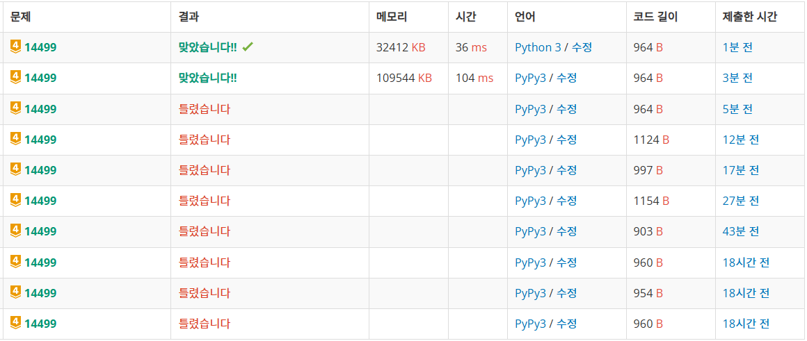 ๋ฉ๋ชจ๋ฆฌ: 109544 KB, ์๊ฐ: 104 ms