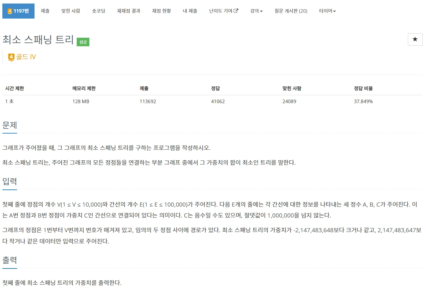 [Python] BOJ / 1197๋ฒ / ์ต์ ์คํจ๋ ํธ๋ฆฌ
