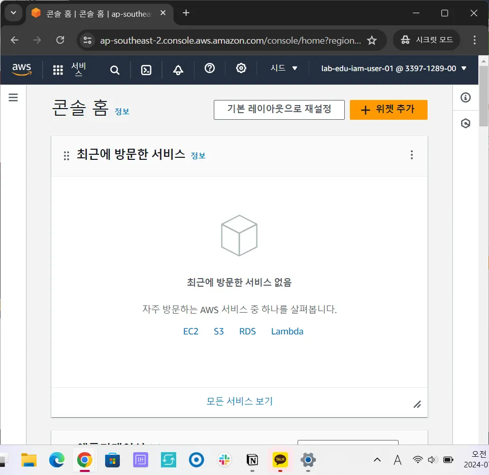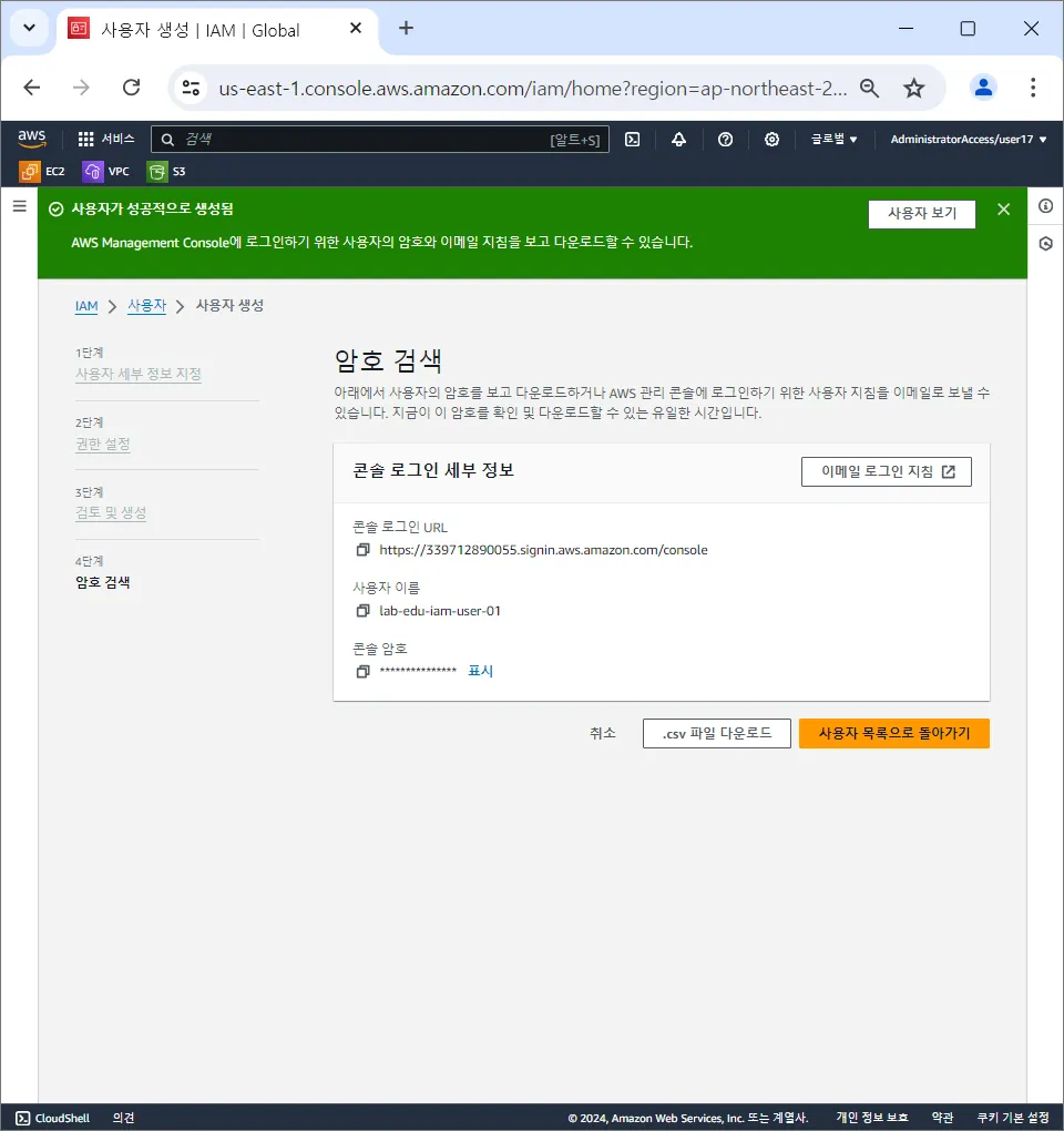 AdministratorAccess ๊ถํ์ ํ ๋นํ IAM User๋ก ๋ก๊ทธ์ธ