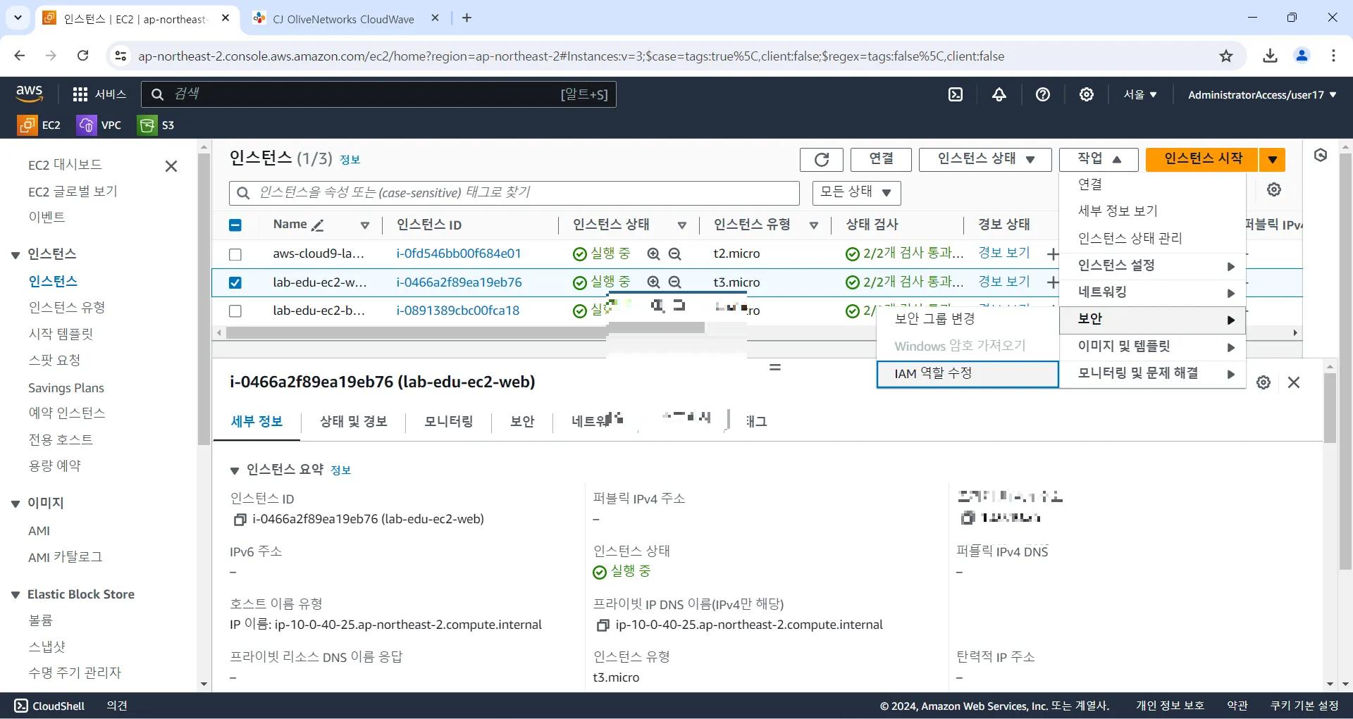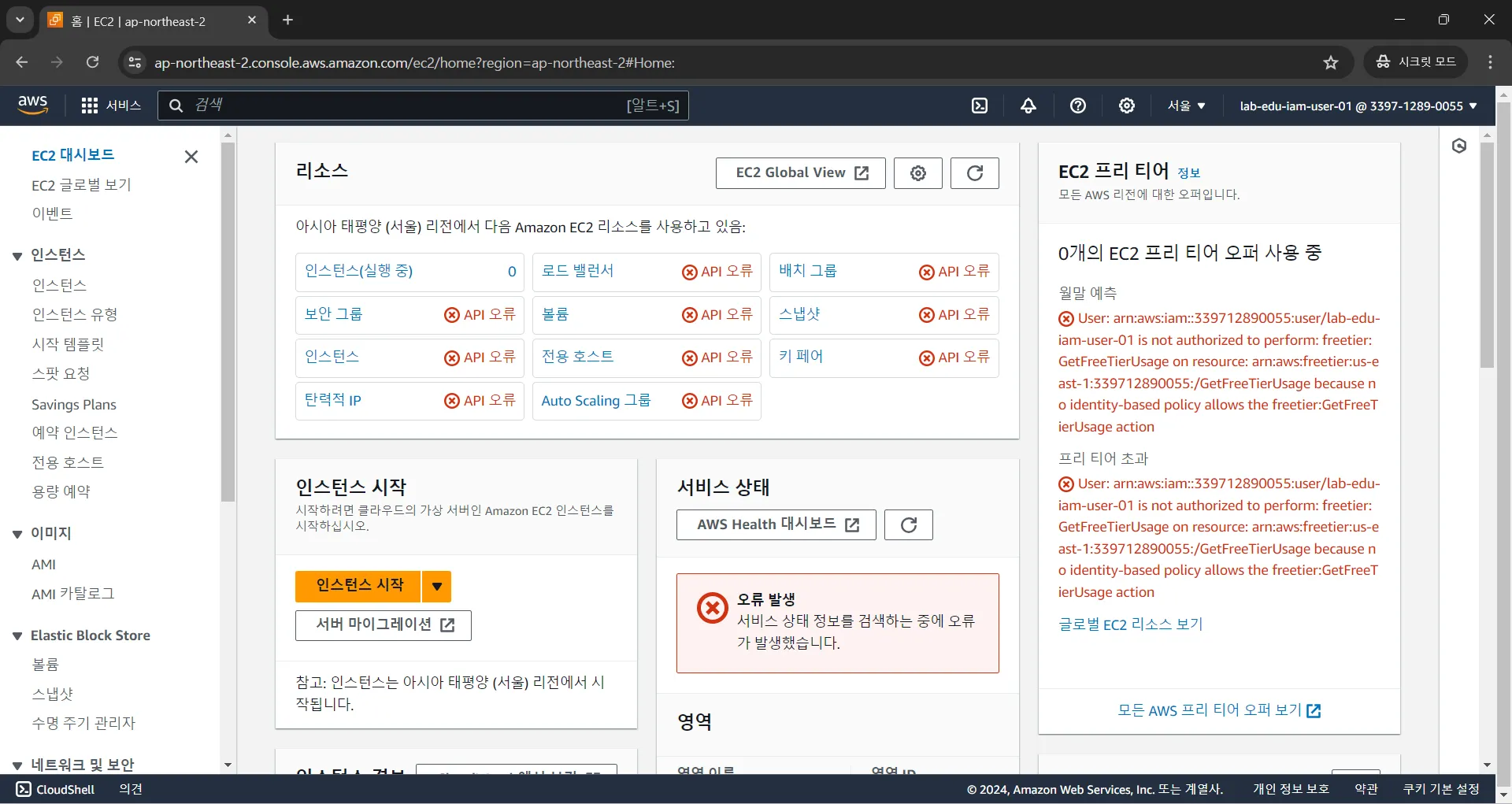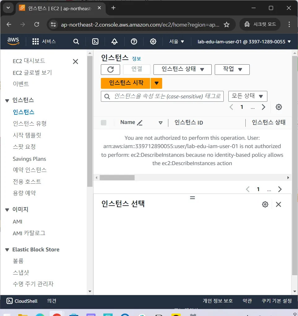 → Administrator Access ๊ถํ์ด ์์ผ๋ฏ๋ก ์ธ์คํด์ค๋ฅผ ๊ด๋ฆฌํ ์ ์๋ค.