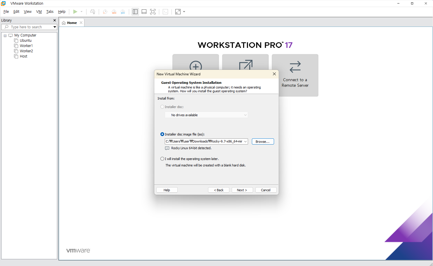 ๋จผ์ Rocky Linux ๊ธฐ๋ฐ VMware ๊ฐ์๋จธ์ ์์ฑ ๋ฐฉ๋ฒ์ ๋ํด ์ค๋ช