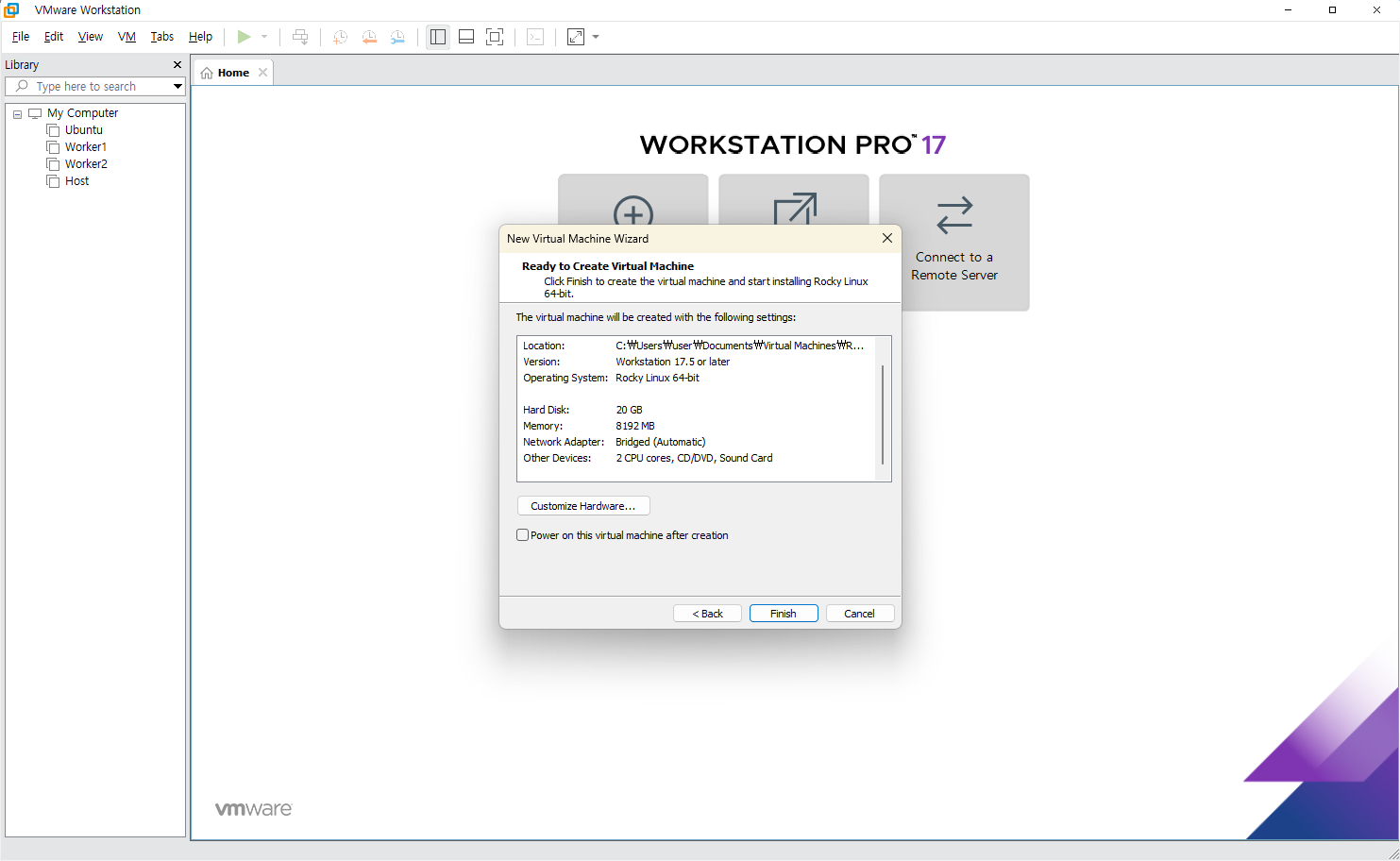 Rocky Linux ๊ธฐ๋ฐ VMware ๊ฐ์ ๋จธ์ ์์ฑ