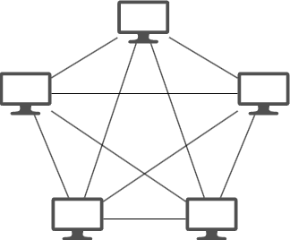 ์คํ(์ฑํ) ํ ํด๋ก์ง๋ ์ค์์ ์๋ ๋ ธ๋์ ๋ชจ๋ ์ฐ๊ฒฐ๋ ๋คํธ์ํฌ ๊ตฌ์ฑ.- ๋ ธ๋๋ฅผ ์ถ๊ฐํ๊ฑฐ๋ ์๋ฌ๋ฅผ ํ์งํ๊ธฐ ์ฝ๊ณ ํจํท์ ์ถฉ๋ ๋ฐ์ ๊ฐ๋ฅ์ฑ์ด ์ ์.