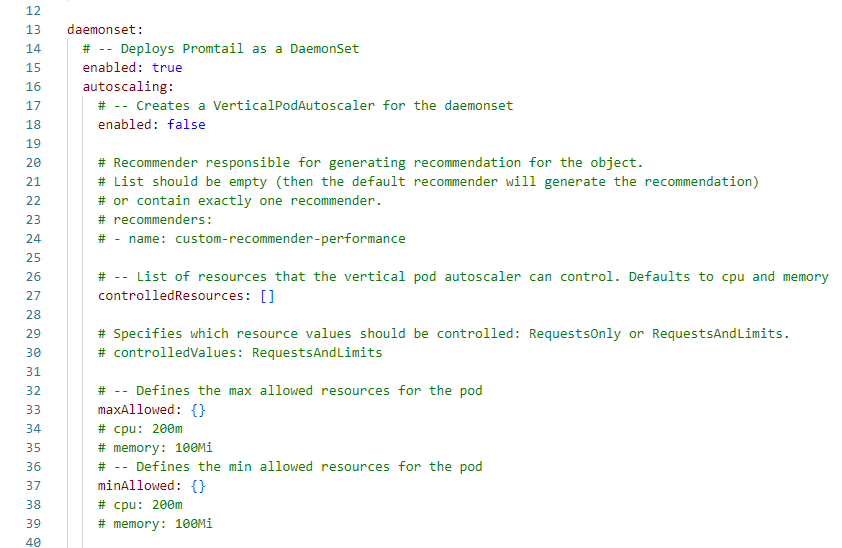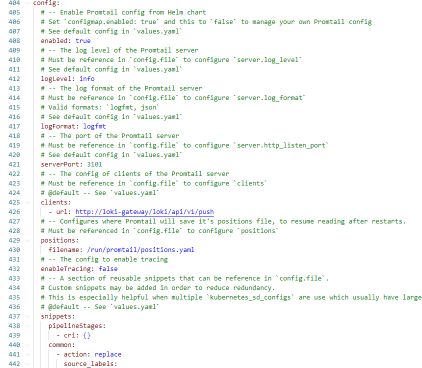 그럼 promtail의 values.yaml 파일에서 일부분만 살펴보겠다.