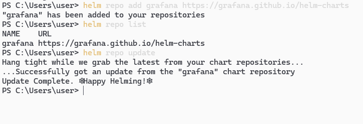 $ helm repo add grafana https://grafana.github.io/helm-charts