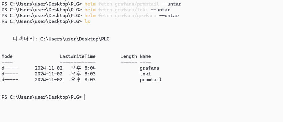 앞서 작성한 EFK는 Fluent Bit만 Helm을 썼지만 PLG는 Promtail, Loki, Grafana 모두 helm으로 진행하겠다.
