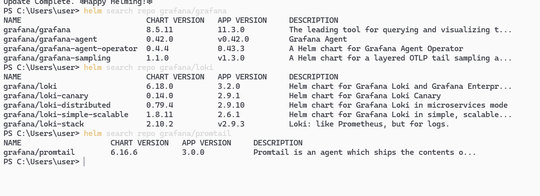 $ helm repo add grafana https://grafana.github.io/helm-charts