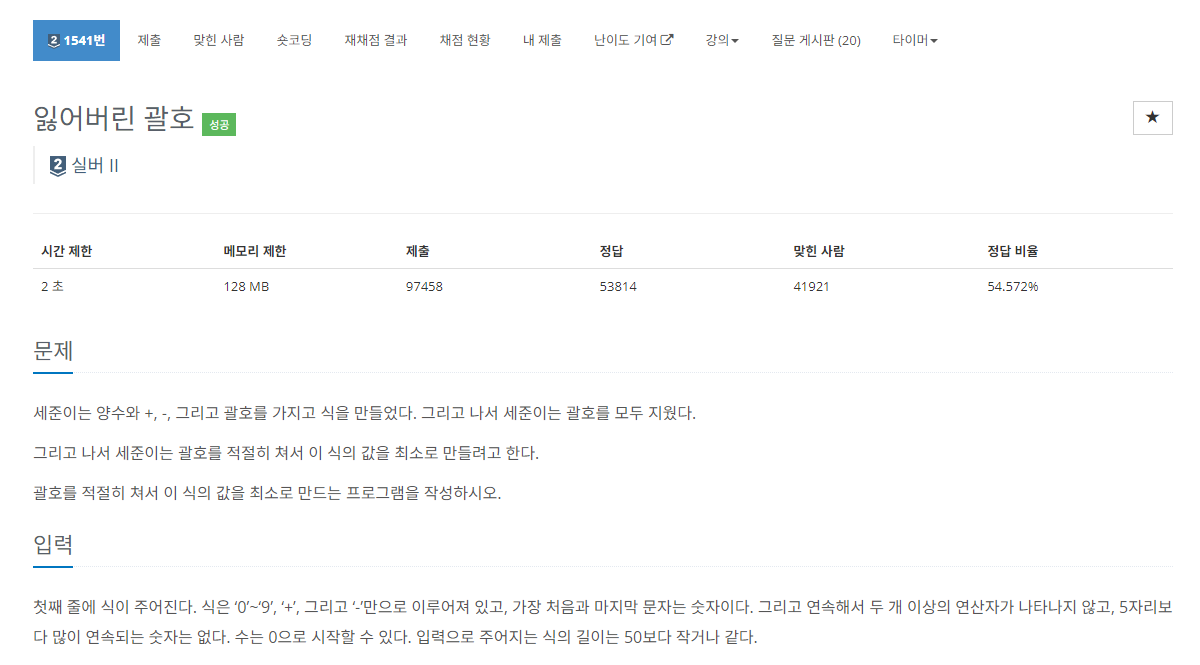 ์ฃผ์ด์ง๋ ๋ฌธ์์ด์ +, -, ์์๋ก๋ง ์ด๋ฃจ์ด์ ธ ์๋ค. ์ฃผ์ด์ง ์์์ ์ด๋ ๋ถ๋ถ์ ๊ดํธ๋ฅผ ์น๋์ ๋ฐ๋ผ ๊ฐ์ ๋ฌ๋ผ์ง๋ค.