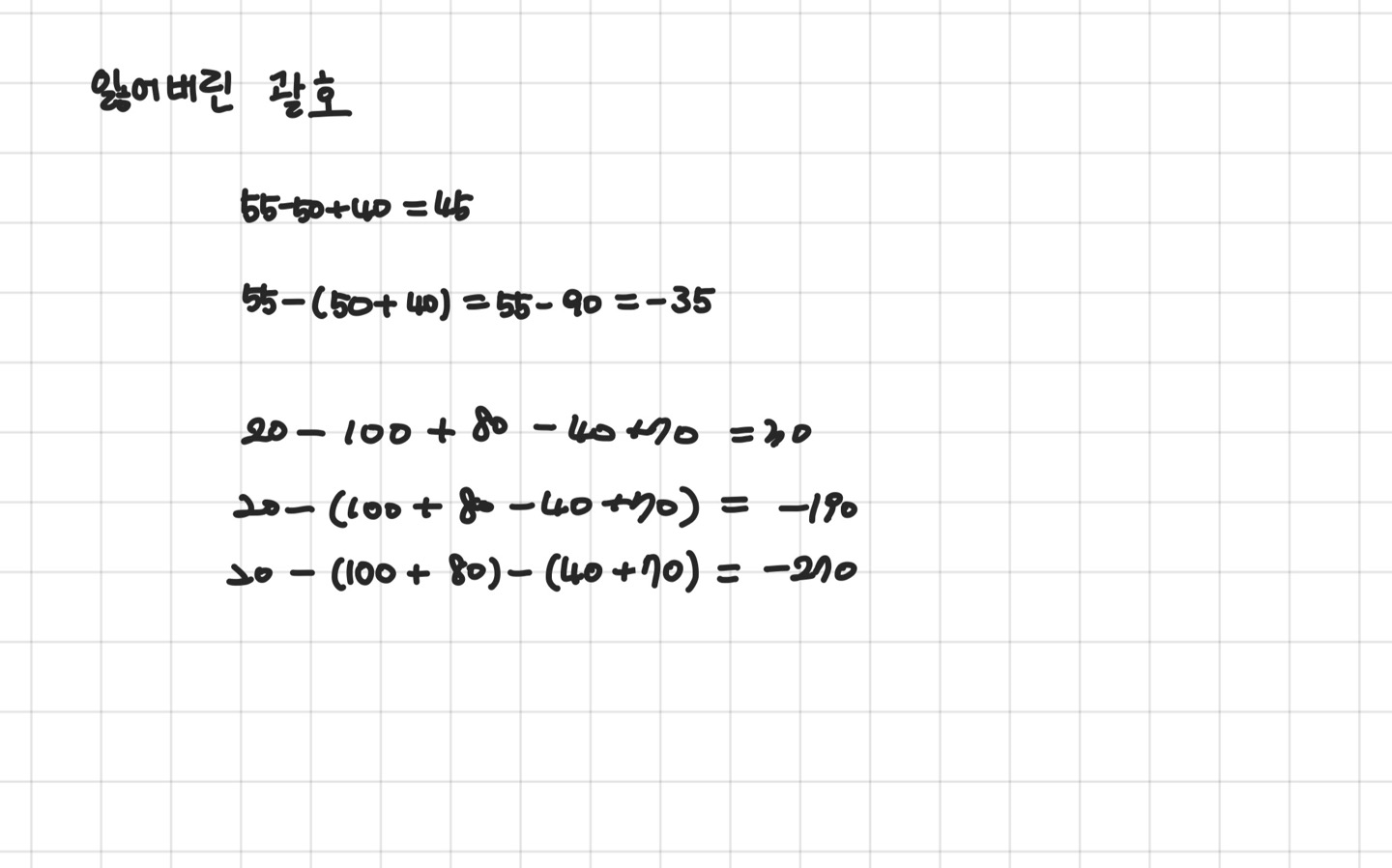 ์ด ๋๋ ๋ง์ฐฌ๊ฐ์ง๋ก '-' ๋ค ์ซ์๋ค๋ง ๋ชจ๋ ๋ํด์ฃผ๋ฉด ๋๋ค. ์๋ ๊ทธ๋ฆผ์ฒ๋ผ ๊ดํธ๋ฅผ ๋ง๋ค ์ ์๋ค.