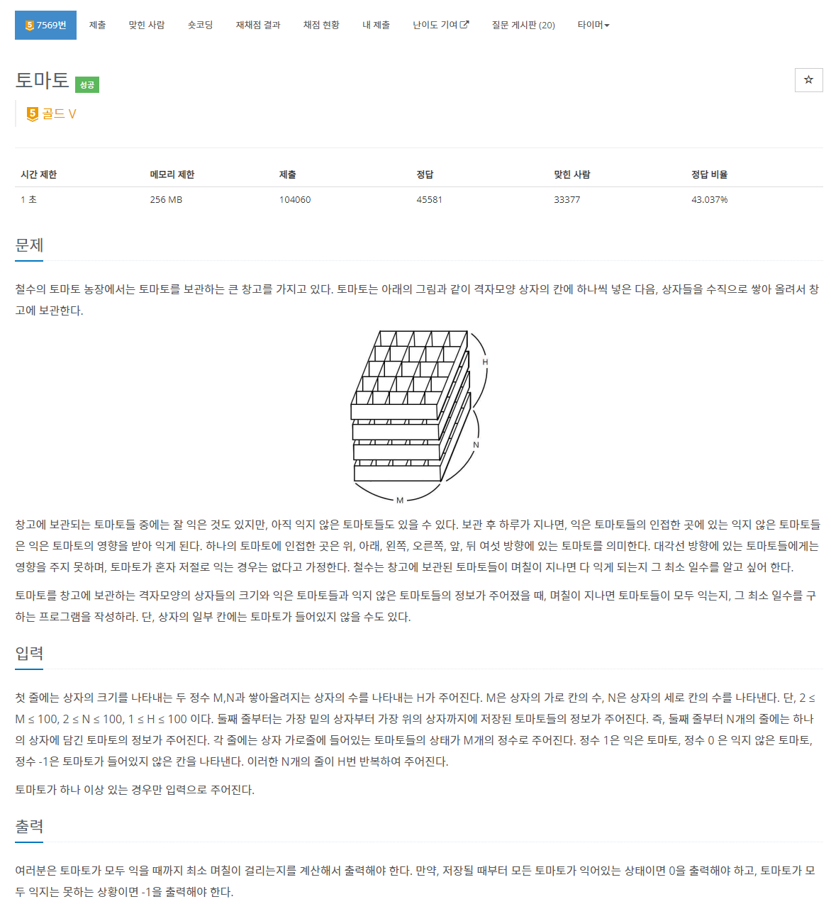 [λ°±μ€] 7576.ν λ§ν /Python - Gold5